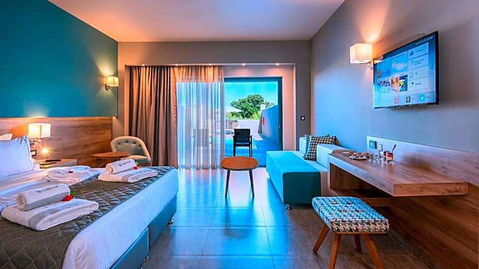 Tastefully decorated room with a living area that opens out to a balcony with pool, garden or sea views. It is equipped with a satellite TV, air conditioning and free toiletries.